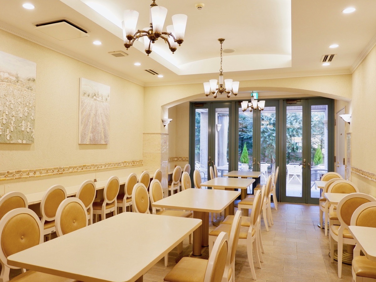 朝食は、2階「コモンラウンジ」でいただけます。窓から太陽の光が差し込む気持ちのよい空間です。