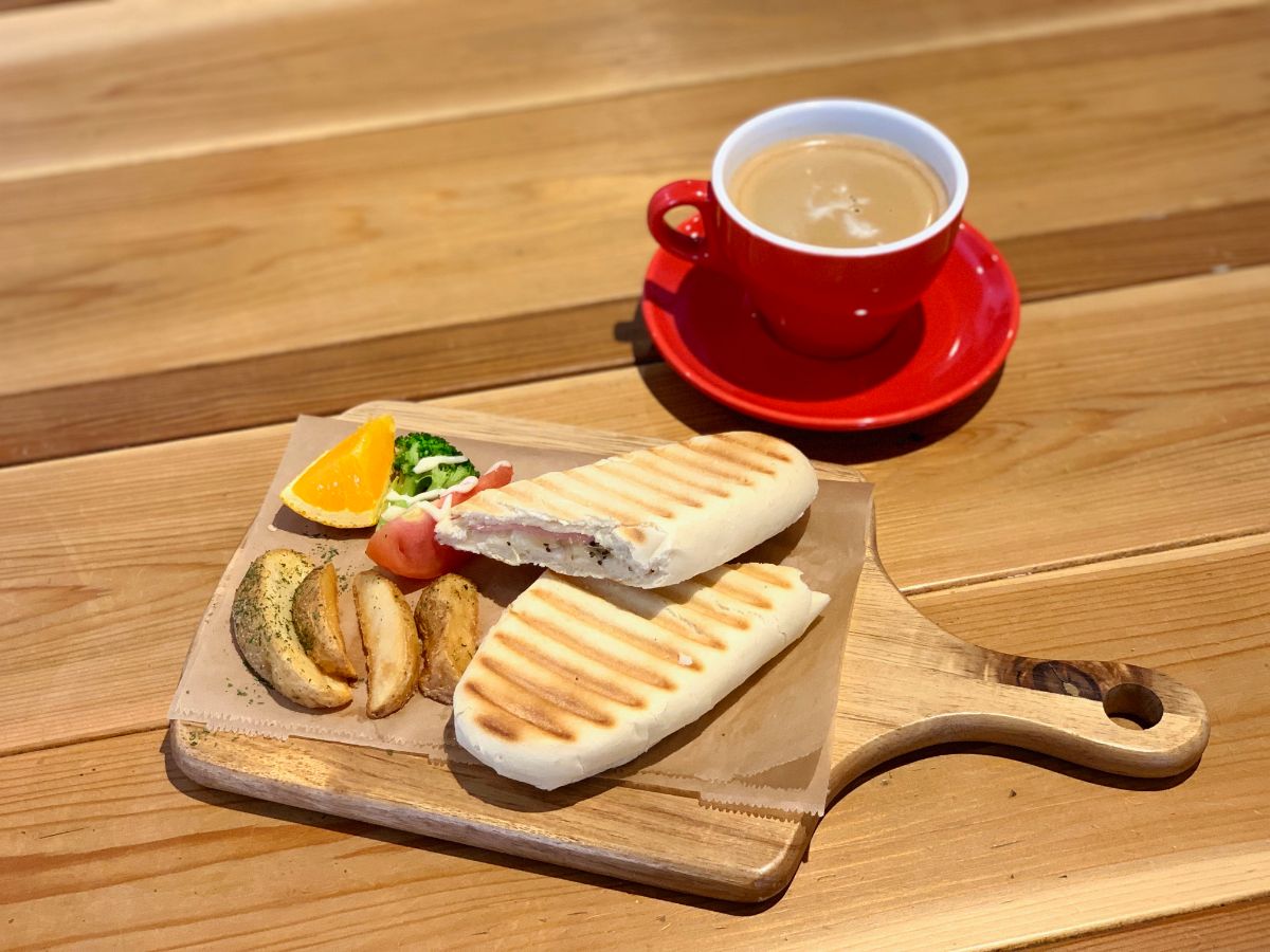 こちらがパニーニの朝食。パニーニはハムチーズ、トマトチーズ、バジルチキンの3種類から選ぶことができます。