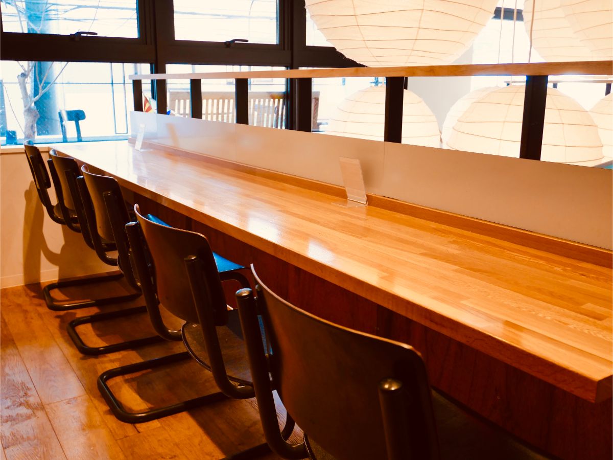 誰かとわいわいコミュニケーションを取りたい人は大きなテーブルで、一人の時間を静かに過ごしたい人はカウンター席で、その人の好みで“自分の空間”を作ることができる場所です。