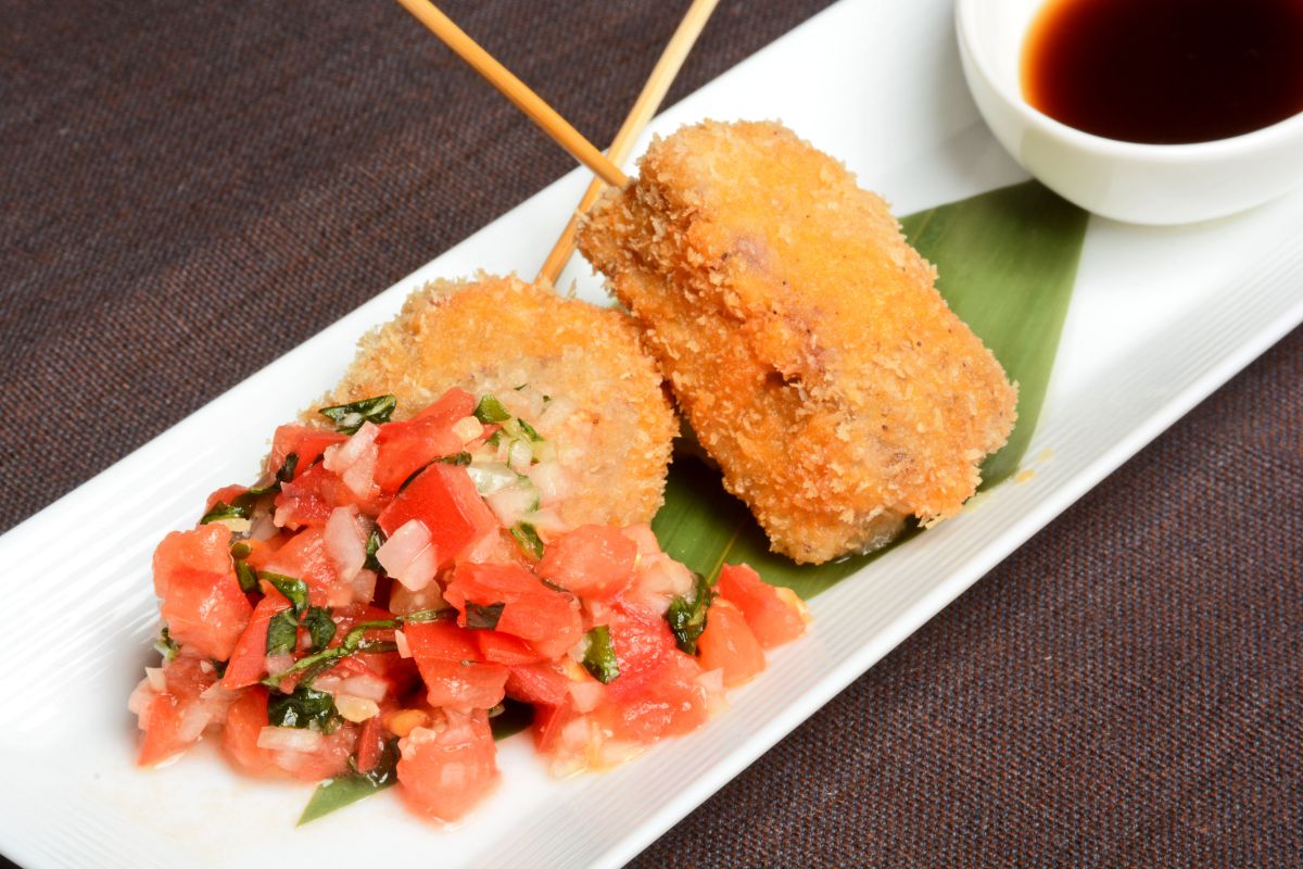 淡路産のドライいちじくとクリームチーズを合わせ、生ハムと爽やかなミントを中で挟んだ、ワインにピッタリな一品。バルサミコソースをかけるとよりさっぱりと召し上がれます。和とイタリアンの融合は意外にも相性抜群かも。
