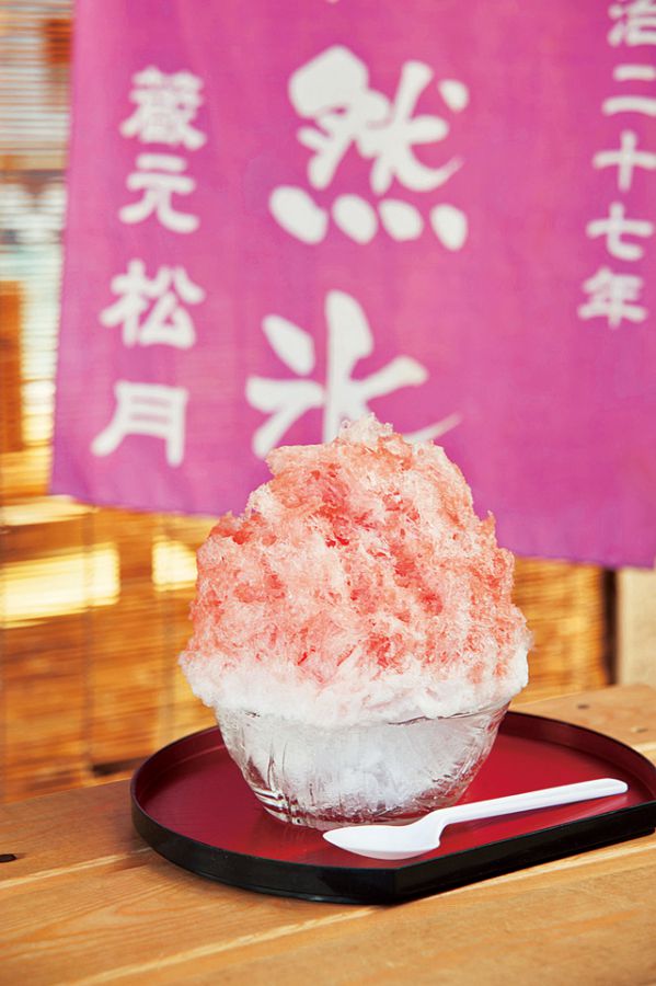 日光で食べたいグルメのひとつが、天然氷を使ったかき氷。やさしい口溶けの天然氷は、頭がキーンとしにくいのが特徴です。天然氷を製造・販売する老舗店「松月氷室」では、ふわふわの氷に、厳選した果物や素材を使ったシロップを組み合わせたかき氷が大人気。栃木の特産・とちおとめや宇治金時、温州みかんなどの定番はもちろん、メロンやブドウなどの期間限定メニューも充実しています。通常は整理券が必要だけれど、冬は整理券なしで食べられる日が多いので狙い目です。
