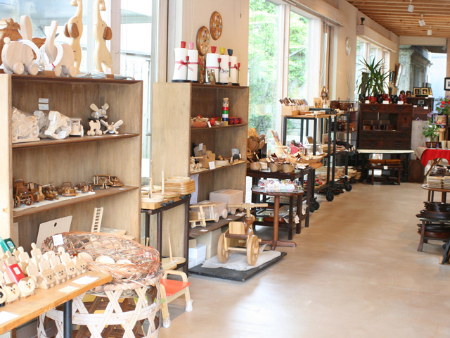 やさしいカーブを描くカトラリーや、使い込むごとにあめ色に変わる白木の器、ぬくもりある子どものおもちゃ。木製製品の専門店「WOOD MOCC」には、かわいらしいフォルムと柔らかな質感が感じられる、さまざまな木で作られたアイテムが並びます。リーズナブルなので、あれこれセットでそろえるのもよさそうです。地域の伝統工芸・日光彫を施した製品もあるので、旅の記念にどうぞ。