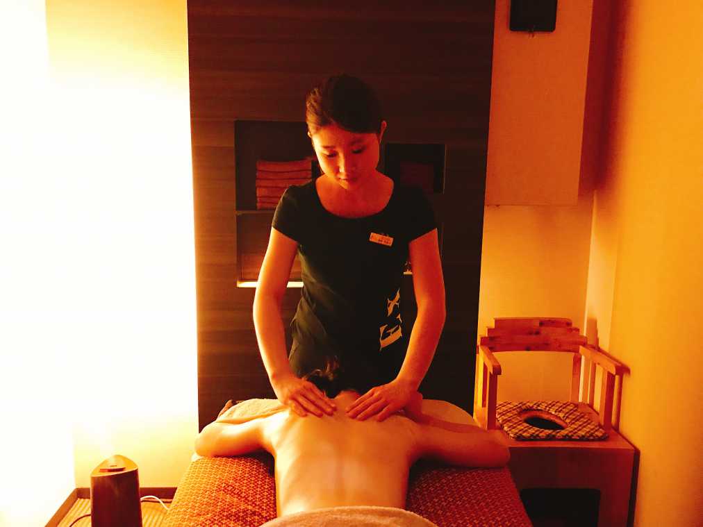 温めた特製のハーブオイルを使って肩周りや背中、脚など全身をハンドマッサージ。日頃滞りがちなリンパの流れがスムーズになり、溜まっていた老廃物も流れてデトックス効果が! 心地よいリラックスタイムを過ごせば、体とともに心の緊張もほぐれていきますね。