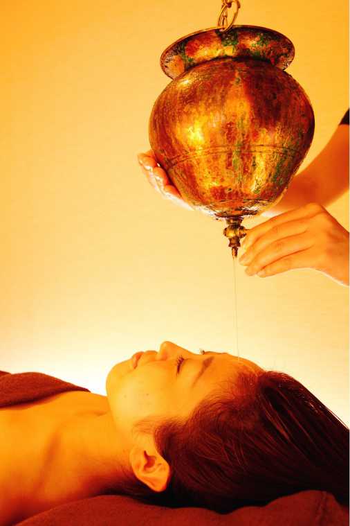 額の真ん中に一定量の薬草オイルを垂らし続けるアーユルヴェーダの代名詞的な施術法、シロダーラは脳のマッサージとも言われています。