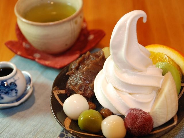 「茶房 藍花」は、店主こだわりのコーヒーとスイーツが楽しめる喫茶店。評判のコーヒーは、鮮度が命といわれる自家焙煎の豆を使い、丁寧にハンドドリップ。挽きたて淹れたての香りとコクをたっぷり堪能できます。コーヒーのお供にするスイーツも粒ぞろい。南伊豆産の天草を使用したあんみつ、伊豆エリアの搾りたてミルクを使ったソフトクリームなど、地元食材を生かした手作りのおいしさは体に染み入るようです。雑貨好きなら、併設の工房も要チェック。伊豆の民芸品や各地の作家の工芸作品がそろっているので、気になる一品が見つかるかもしれません。