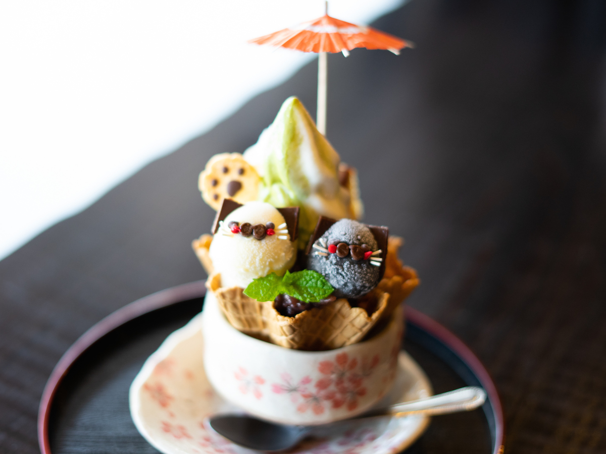 絶対写真に撮りたくなる!広島・尾道名物のわらび餅を使ったキュートな傘つき猫パフェ