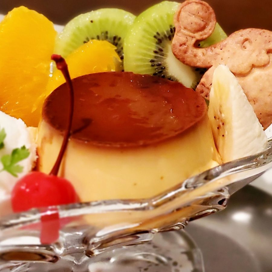 もう一つの人気メニューがプリンアラモード。喫茶店のプリンアラモードと聞いただけでワクワクしませんか?「喫茶パオーン」のプリンアラモードは、さらに夢広がるゾウクッキー付にゃー♪