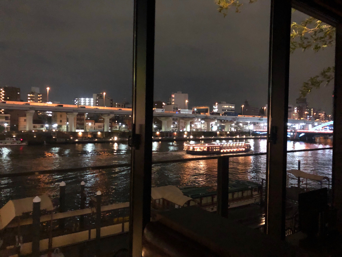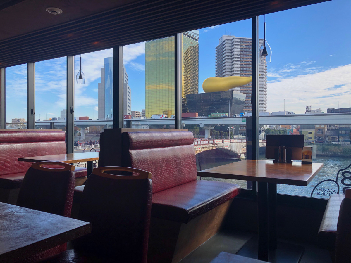 店内からは思いっきり隅田川ビューの最高な景色が堪能できますよ。