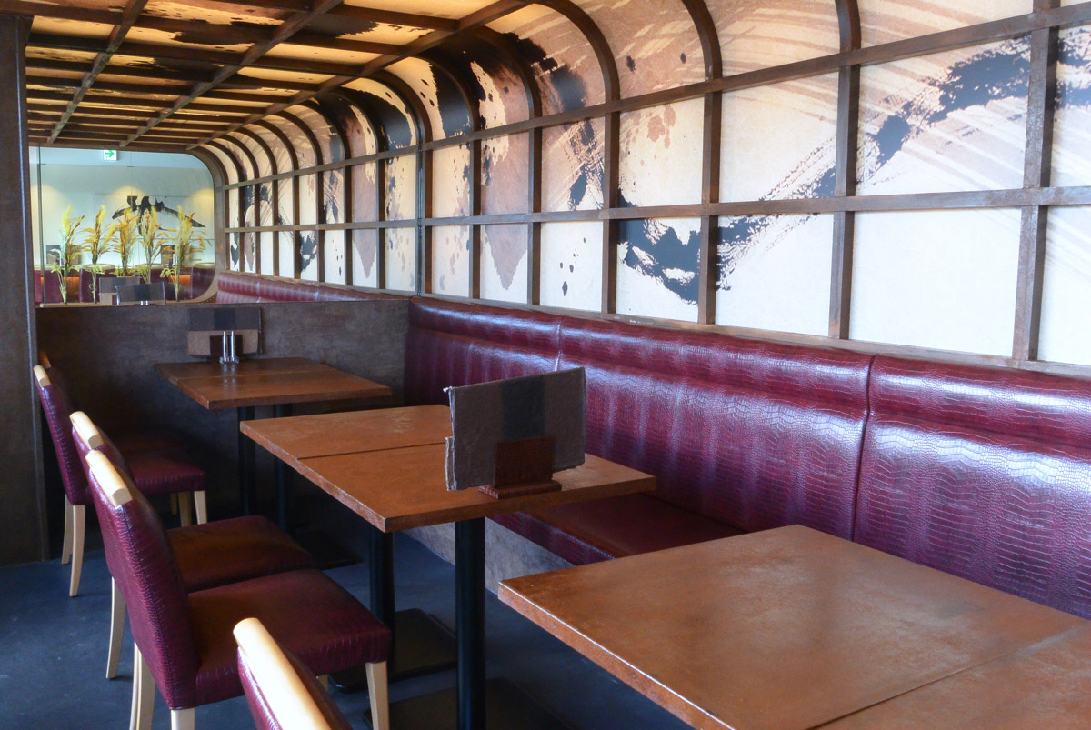奥の座席もオリエンタルな雰囲気で素敵。こちらからでも、窓側の景色を十分に堪能できます。