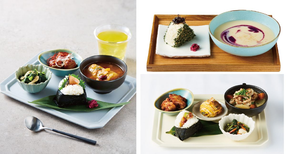 伊右衛門カフェでは食事もOK。食事のメニューは、組み合わせを楽しむ和食の基本「一汁三菜」をもとに考えた「スープ」「おむすび」「おばんざい」「ドリンク」がセットになった御膳「こだわりスープとおむすびの伊右衛門御膳」がおすすめ。