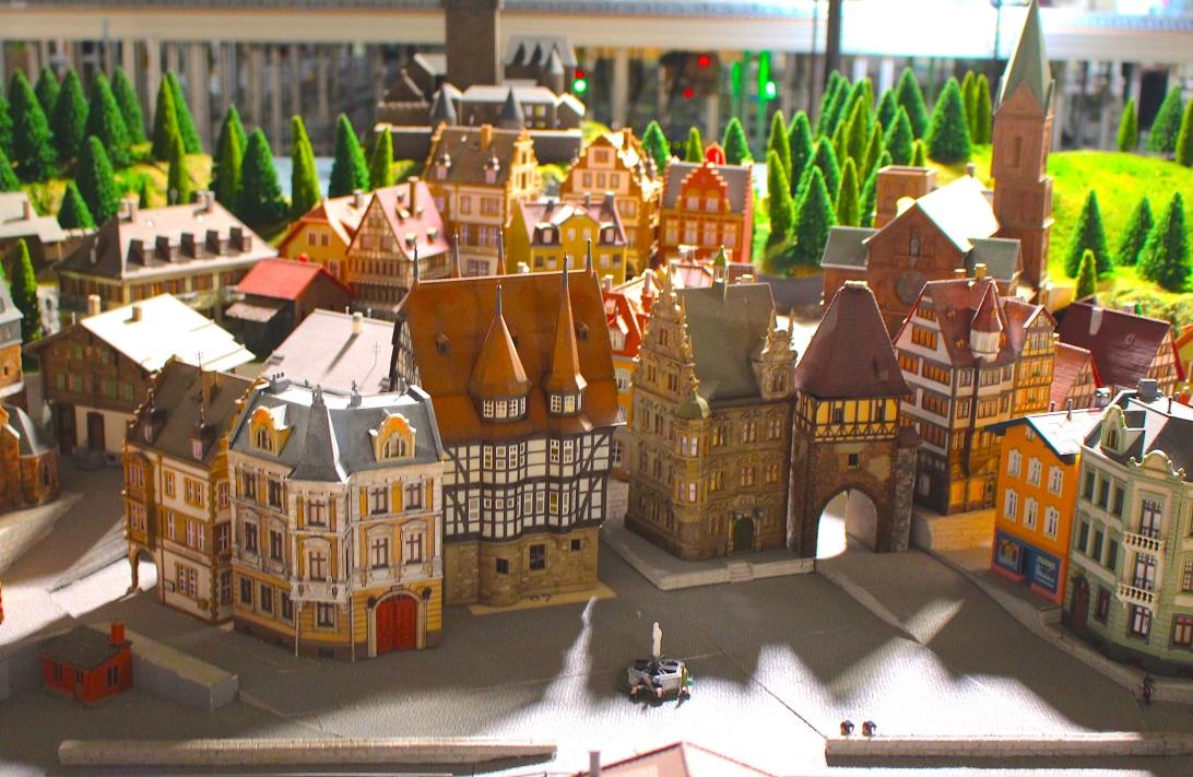 続いてご紹介するのは「世界の街エリア」。ヨーロッパやアジアといった世界のさまざまな地域を再現したミニチュアが並びます。こちらのミニチュアは、中世ドイツのような街並みを演出しています。石畳や田舎風の建物を細かく再現していて、思わず見とれてしまいます。