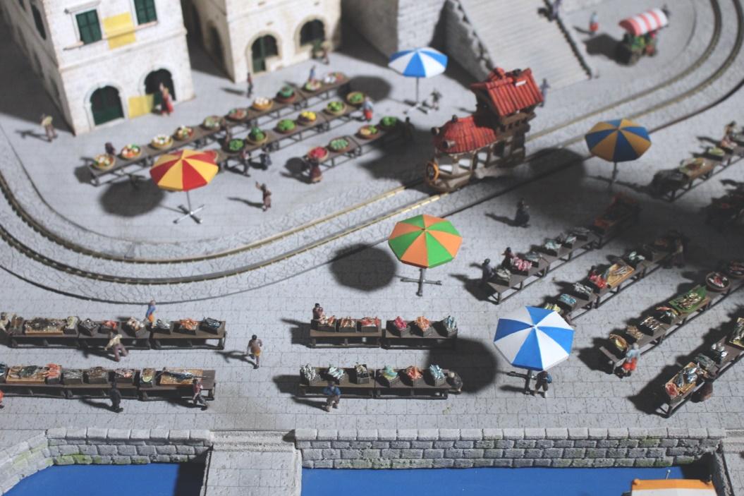 港には、市場や発着する船、そこに集まる人々など。いたるところが細かく再現されています。活気ある街の雰囲気や、市場の賑わいを思わず想像してしまいます。