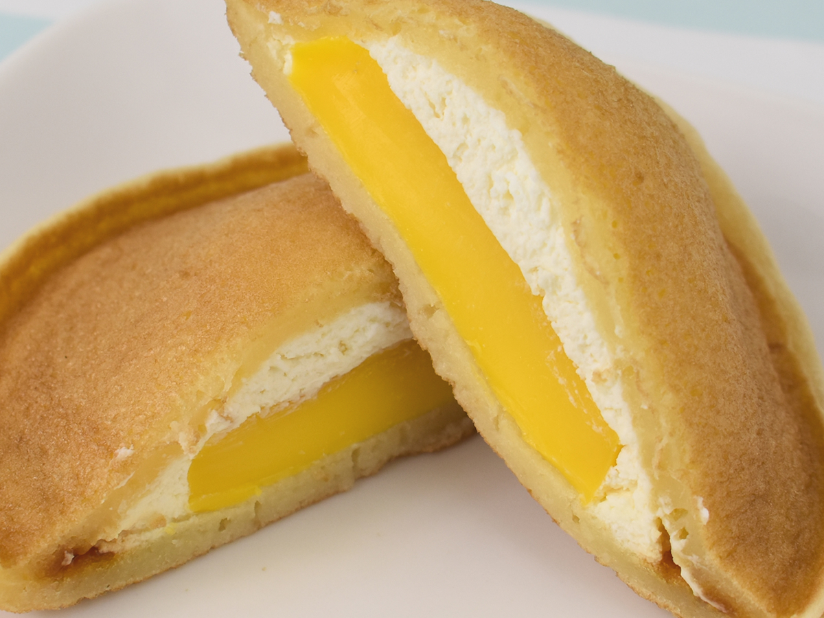 そっと持ちながら慎重に食べたところ、生地が想像以上にもっちもち…。断面を見れば生地はうすめなのですが、口の中で存在をこれでもかと主張してきます。やわらかいのに食べごたえがあり、くちどけはしっとり。単品でも楽しめる、パンケーキのような味わいでした。