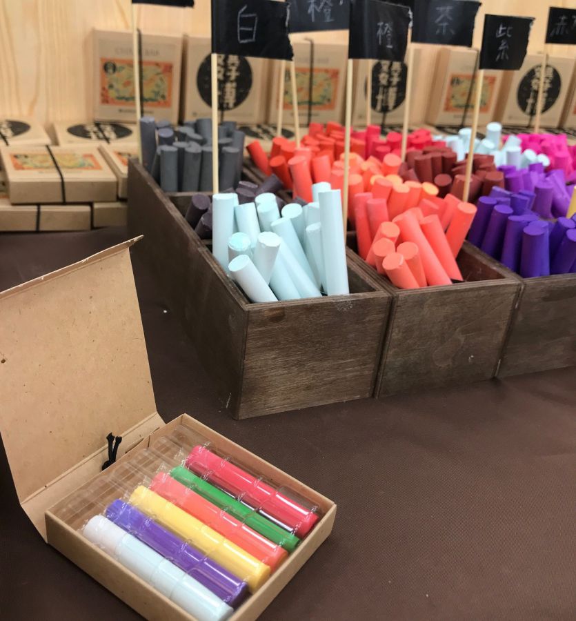 チョークのメーカー「日本理化学工業」(ブース番号:113)ではチョークバー300円が楽しめます。なかには蛍光カラーのチョークや細いチョークなど、普段見かけないチョークがズラリ。