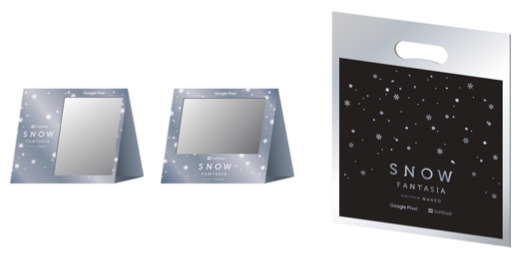 さらに、「SNOW FANTASIA DIRECTED BY NAKED」をイメージしたオリジナルフォトフレームと、「Google Pixel オリジナル冊子」を、オリジナルショッパーに入れてプレゼントしてくれます。素敵な思い出を、形に残せるうれしい特典がすべて無料で手に入るので忘れずに手に入れてくださいね。