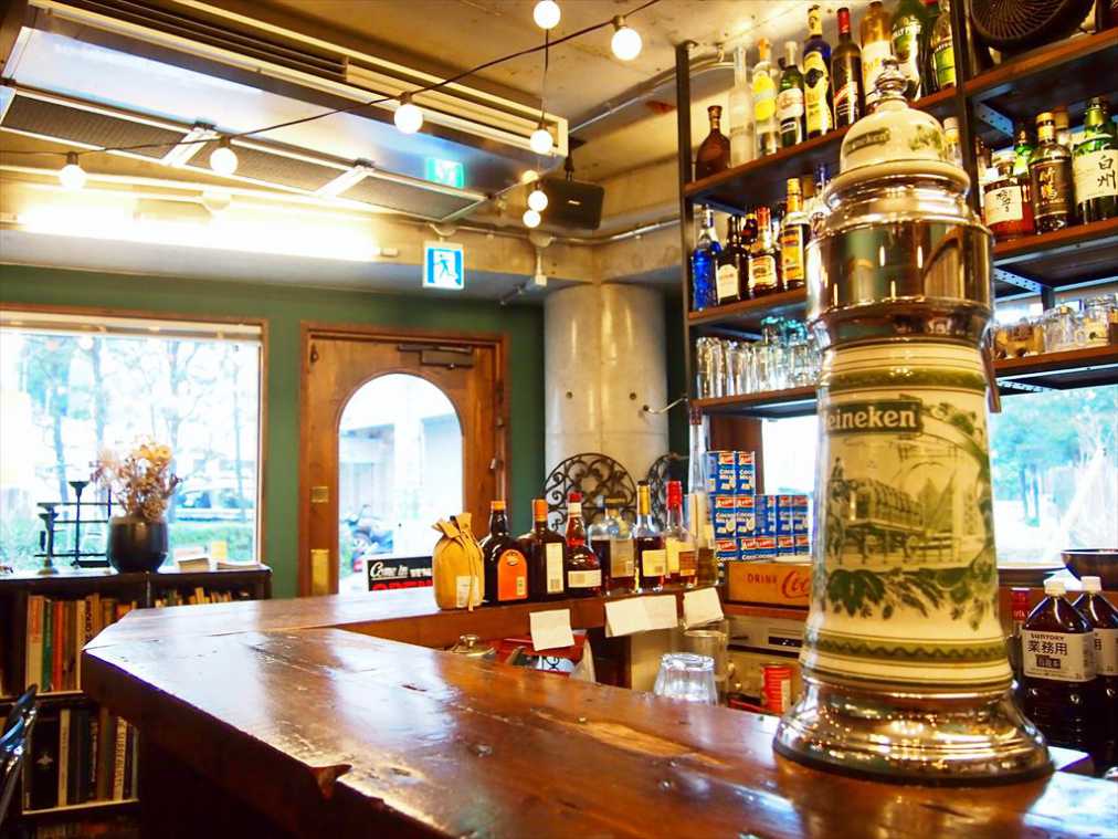 店内は、洋酒のボトルが並びレトロムードが漂う木製カウンターが印象的。なかでも、ハイネケンの陶器製ビアサーバーは16世紀頃にオランダで発祥した陶器「デルフト焼き」という、日本ではあまり目にすることのない超レア品!