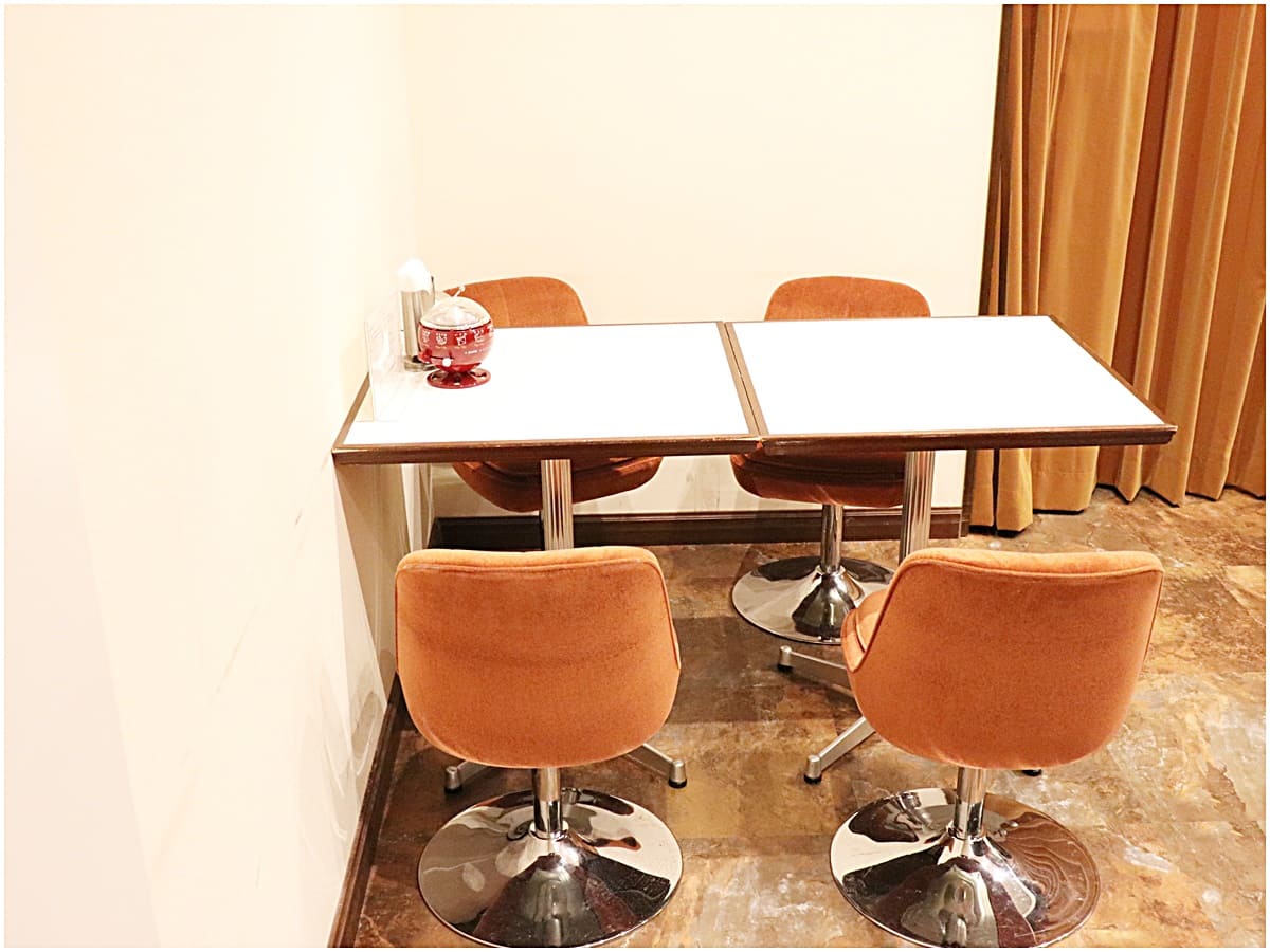 店内にはカウンター席と、4人掛け、2人掛けのテーブル席が1つずつ。