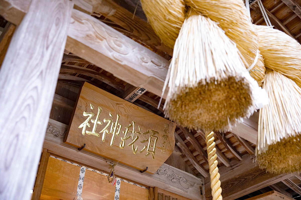 出雲神話の一つとして有名な「ヤマタノオロチ伝説」。スサノオノミコトが大蛇を退治した後、クシナダヒメと結ばれて宮造りを行いました。日本最初のお宮とされる須我神社の成り立ちです。スサノオノミコト夫婦神とその御子神が主祭神として祀られていて、悪切、開運、縁結びや子授けのご利益があるといわれています。