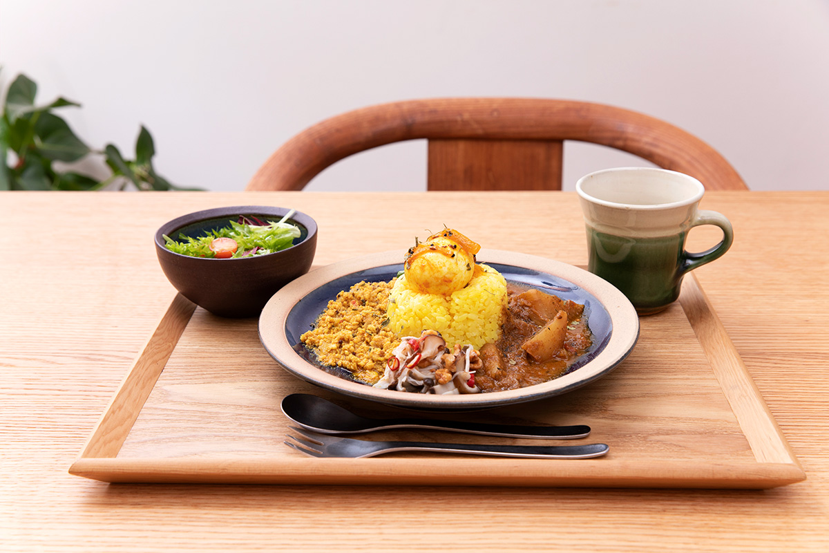 時間があれば、ぜひベーカリーのカフェで。2018年にオープンしたベーカリー「ル コションドール出西」では、「出西ブルー」と呼ばれる青い器など、すべて出西窯の器でメニューを提供。実際に料理が盛り付けられている様子を見て体験することができます。普段使いの器にこだわると、なんだか毎日の暮らしが楽しくなりますね。