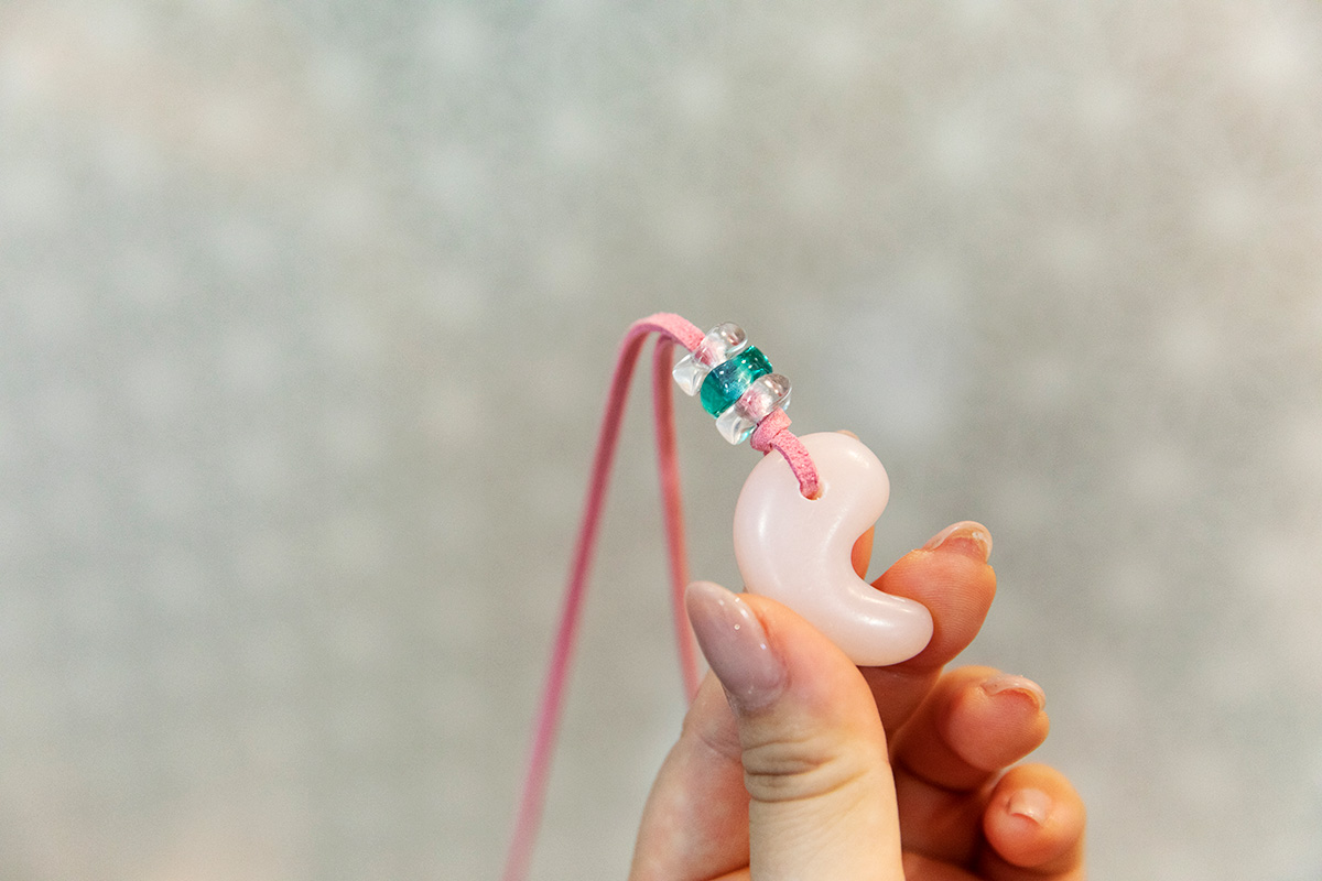できあがった勾玉はそのまま持って帰ることもできますが、紐やビーズ(別途料金)を選んでネックレスにしてもオシャレ。 作った勾玉を持って神社に参拝し、願いを込めて「石の浄化」を行うと、勾玉本来のパワーを発揮してくれるそうなので、時間があれば、帰りに立ち寄ってみても。