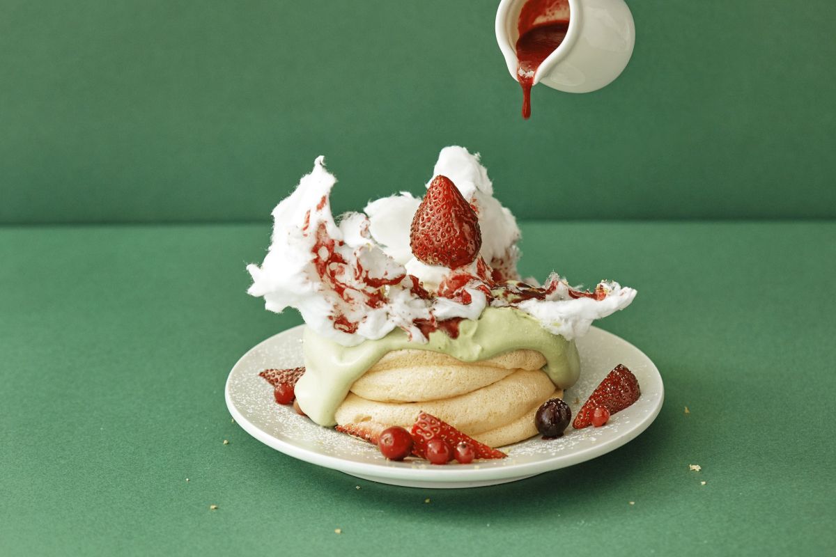 クリスマスにぴったりなゴージャスなビジュアルの新作は、「奇跡のパンケーキ ピスタチオとミックスベリー」(税別1400円)。
