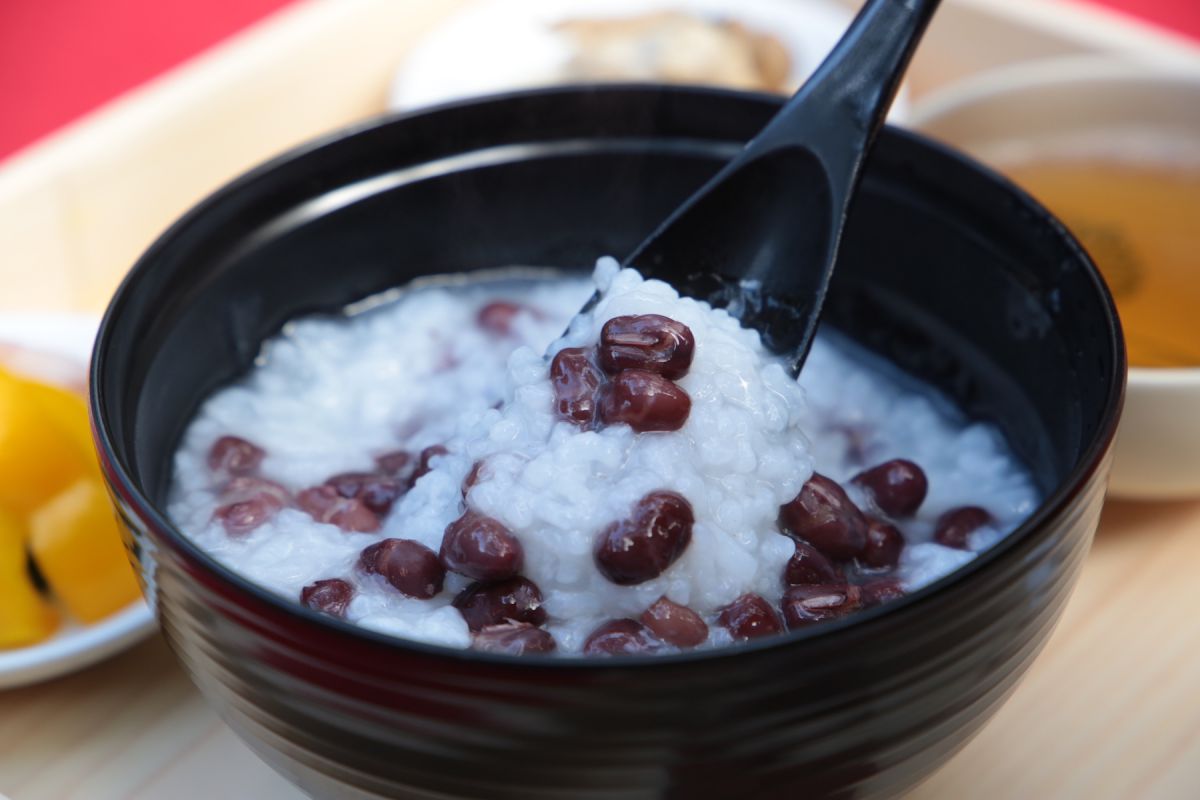 下鴨神社では、新年の1月15日、新しい年の五穀豊穣、国家国民の安泰を祈願して、お粥神事が執り行われます。『さるや』でも、この神事にならった小豆粥「鴨社のお粥」が寒くなると登場します。
