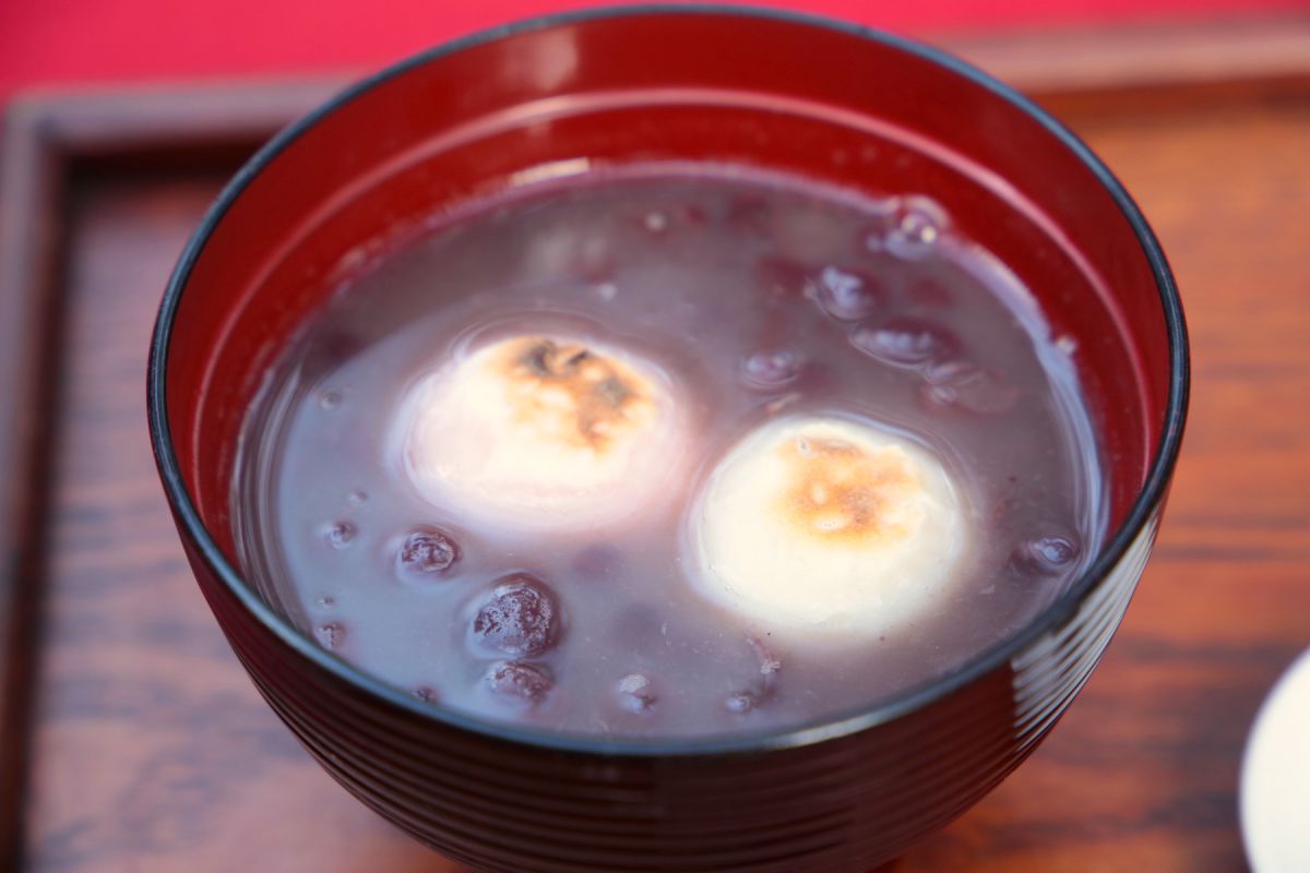 甘さ控えめの上品なおぜんざい。こちらも献上される最高級の丹波大納言小豆を、やわらかい甘さで炊き上げられていて、最後の一滴までおいしく食べきれます。