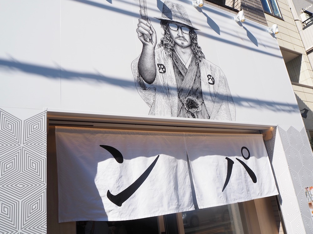 「ンパ」と大きく書かれたのれんと、落語家のような風貌の男性のイラストが一際目を引きます。