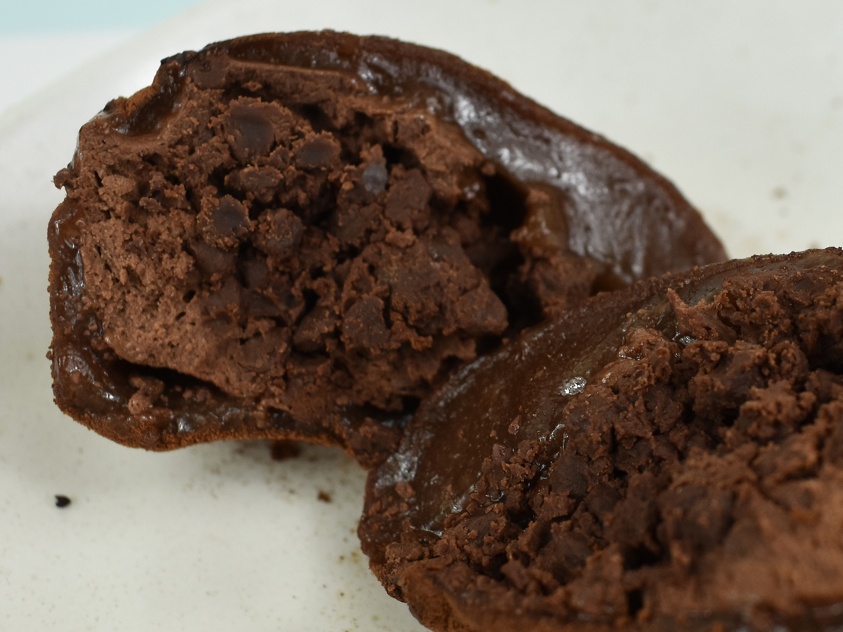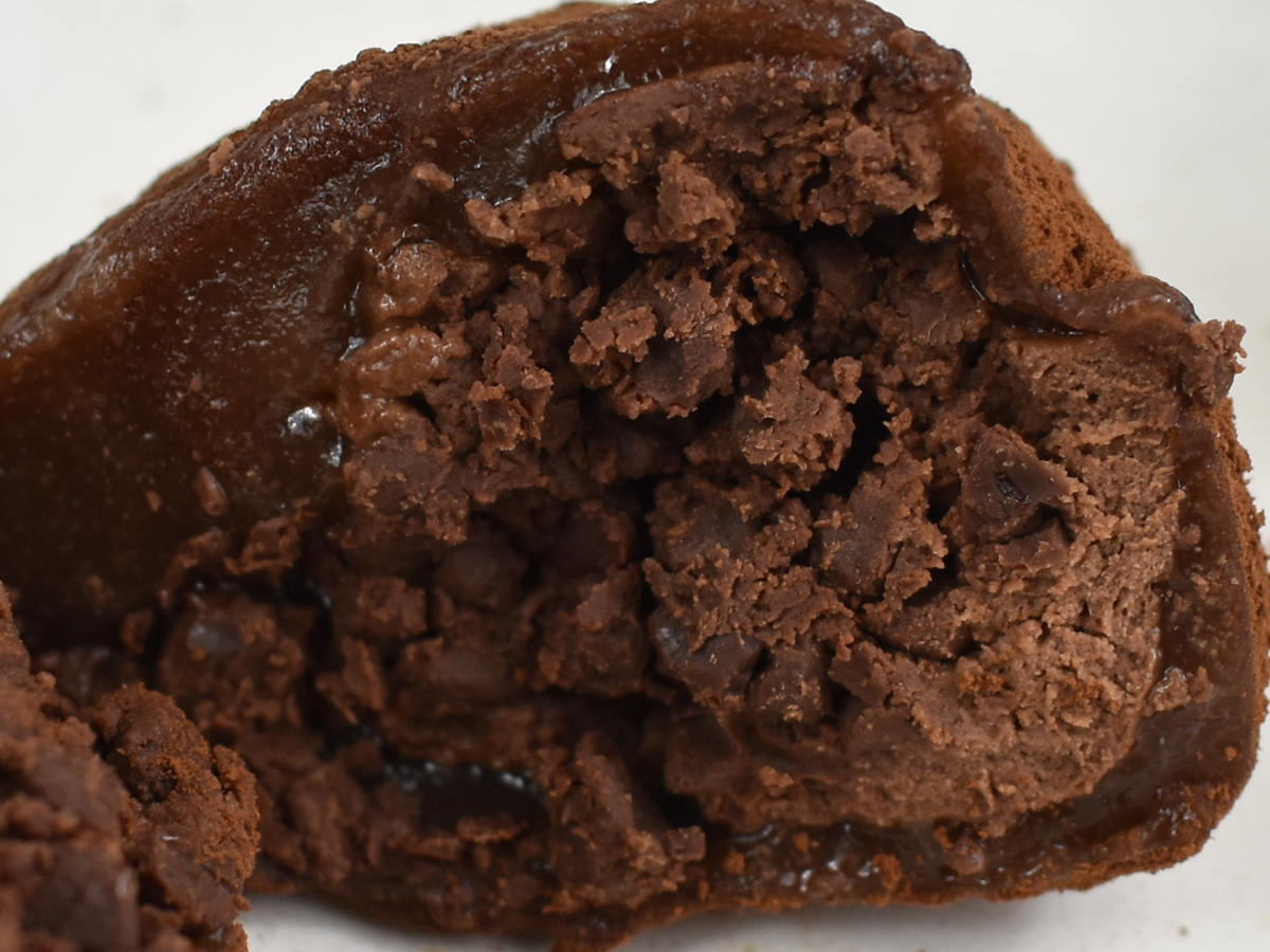 それでは、大福を味見していきます。モチモチ食感のお餅は、予想以上にしっかりとした噛みごたえ。カカオの香りが鼻から通過するため、ひと口食べるだけで幸せな気分になります。濃厚なチョコクリームがプラスされて、クリーミーな味わいを演出していました。