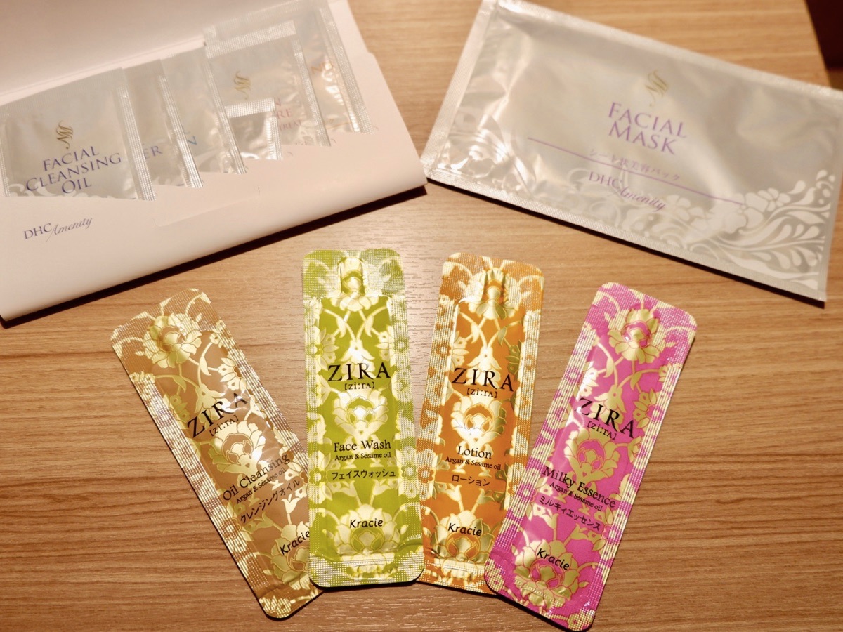 洗面台には、18階の高層階のみ「DHC」の基礎化粧品を備えていますが、フロントで「ZIRA」の基礎化粧品を必要な分だけ提供してくれるんです。用意しなくてもよいのがうれしいですよね。