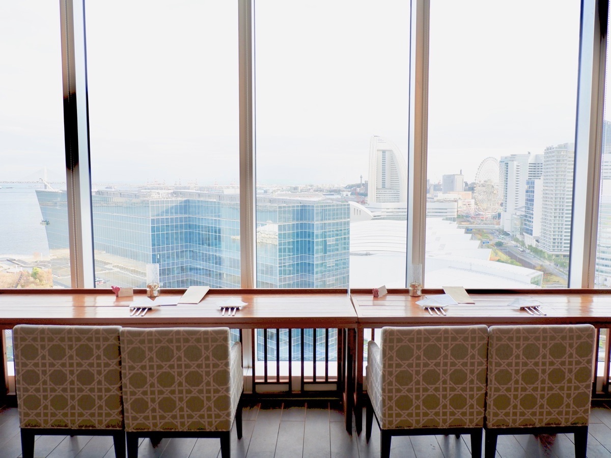 大きな窓からはベイブリッジや横浜港を見渡せます。