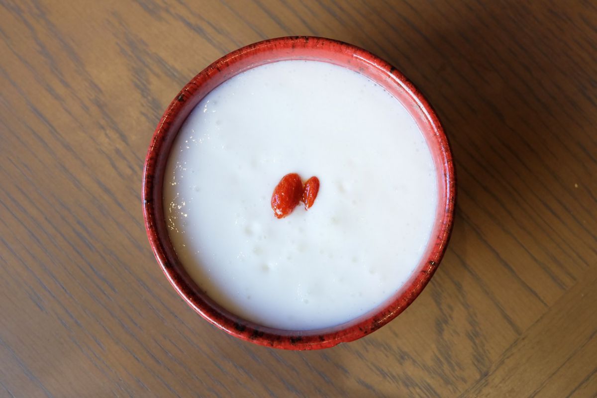口の中に入れると、消えて無くなる「淡雪杏仁豆腐」(338円+税)。コース料理の後のデザートにもぴったり!