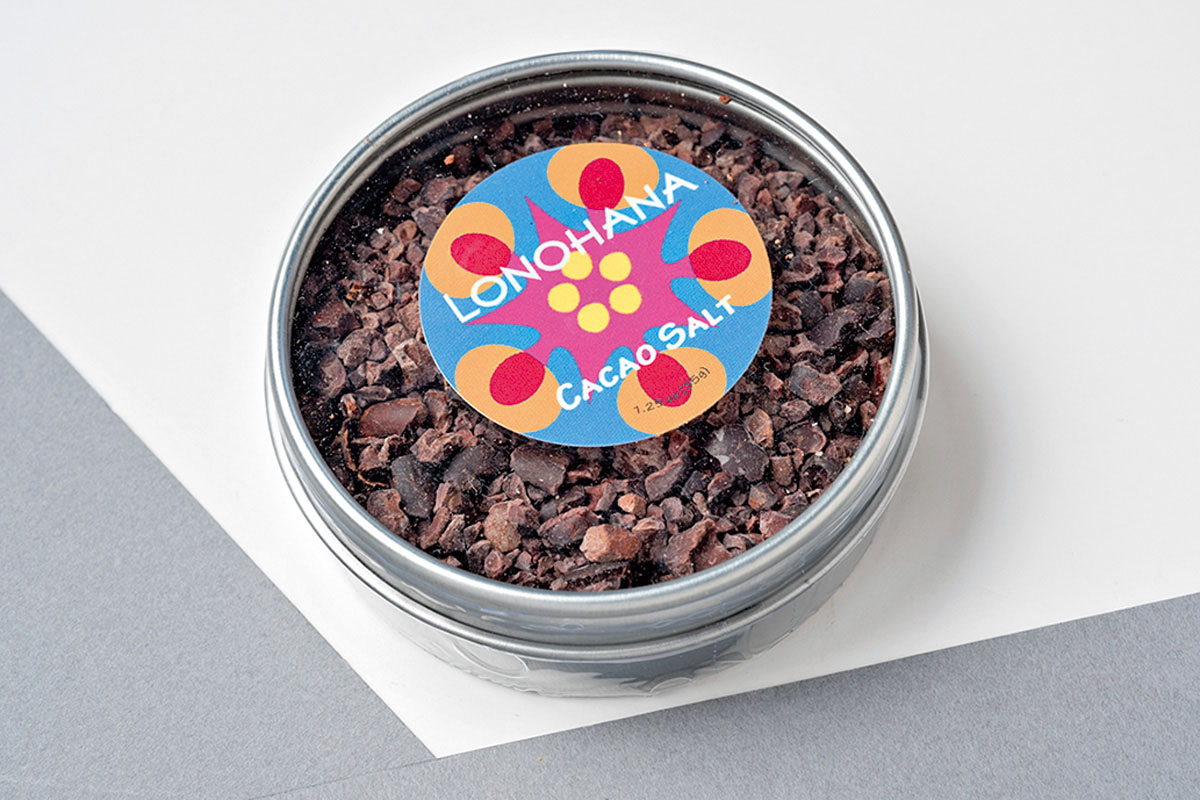 カカオ・フィニッシング・ソルト$7はチョコレートショップならではのカカオフレーバーの塩。ハワイ産カカオ豆で作るノースショアのファームで生産しています。かつては会員しか買えなかった希少なチョコがコレ。