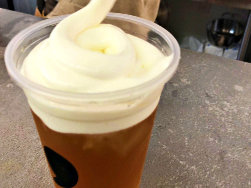 1番人気の「自家製チーズティー」がこちら!ふわふわのクリームがのって、まるでビールのような見た目。