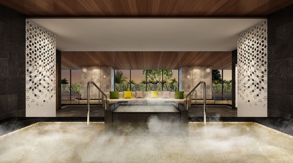 伝統的な日本の温泉と、モダンなプールが融合されたスタイリッシュな「温泉大浴場」は、水着着用だから、カレとでも一緒にゆっくり過ごせます。ミネラルたっぷりの温泉ヒーリングでこころも身体もポカポカに。水着持参をお忘れなく!