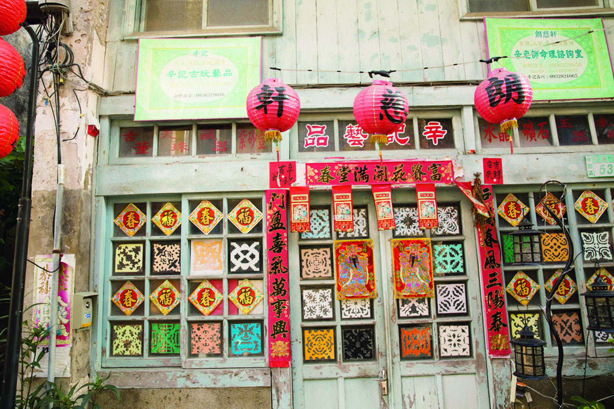 清代の面影が残るレトロな雰囲気の歴史保存地区。「北勢街」という碑がある場所を曲がると神農街が広がっています。薬王廟を中心に、風情ある石畳の道に沿ってショップや飲食店が点在しており、カラフルに飾られた民家などが300mほど続いています。色とりどりに飾られた石畳の通りを歩くと、まるでタイムスリップした気分に。