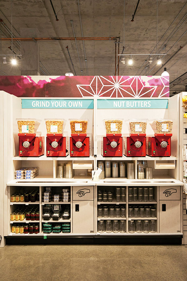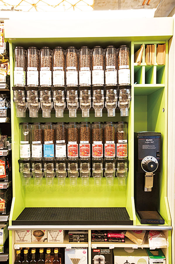 シリアル、ナッツ、ドライフルーツなど種類豊富なドライフードコーナー。バルクはシリアルやコーヒー豆、石けんなどを必要な量だけ取って購入できる優れもので、自分で購入したい量を調整しながら買物すればローカル気分が上がること間違いなし!