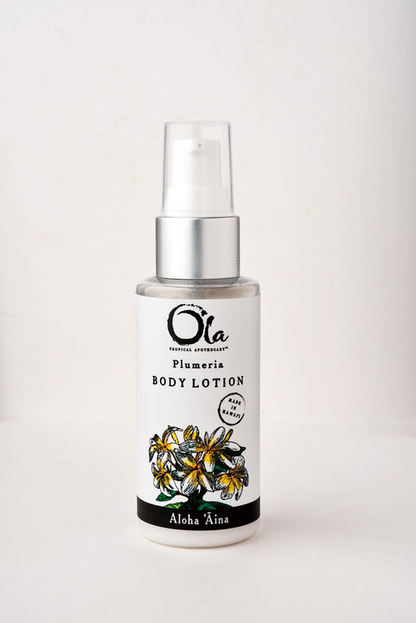 ハワイ島生まれのコスメ、OLAのボディローション$9.99。プルメリアの香りでリラックス。