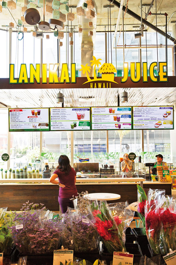 ハワイ産食材を使用したドリンクが人気のジュースバー。濃厚なスムージーのほか、搾りたてのコールドプレスジュースやフルーツボウルも販売していて、スムージーは注文を受けた後シェイクしてくれますよ。