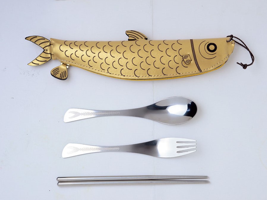 台南の名物サバヒーのケースに入ったカトラリーセットNT$980は金銀2色展開。