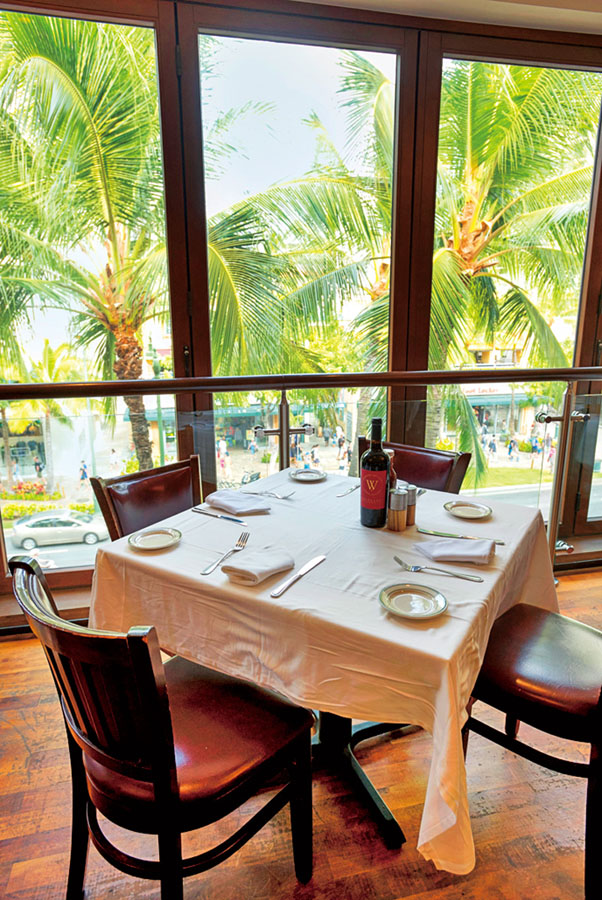 ハワイに自生する木、キアヴェの炭を使って高温で一気に焼き上げます。ヨーロッパの邸宅を思わせる重厚なインテリアの店内では、熟成させて旨みを最大限に引き出したUSDA認定プライムビーフを調理するシェフの様子も見学できます。
