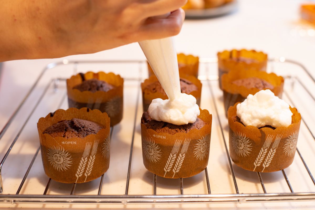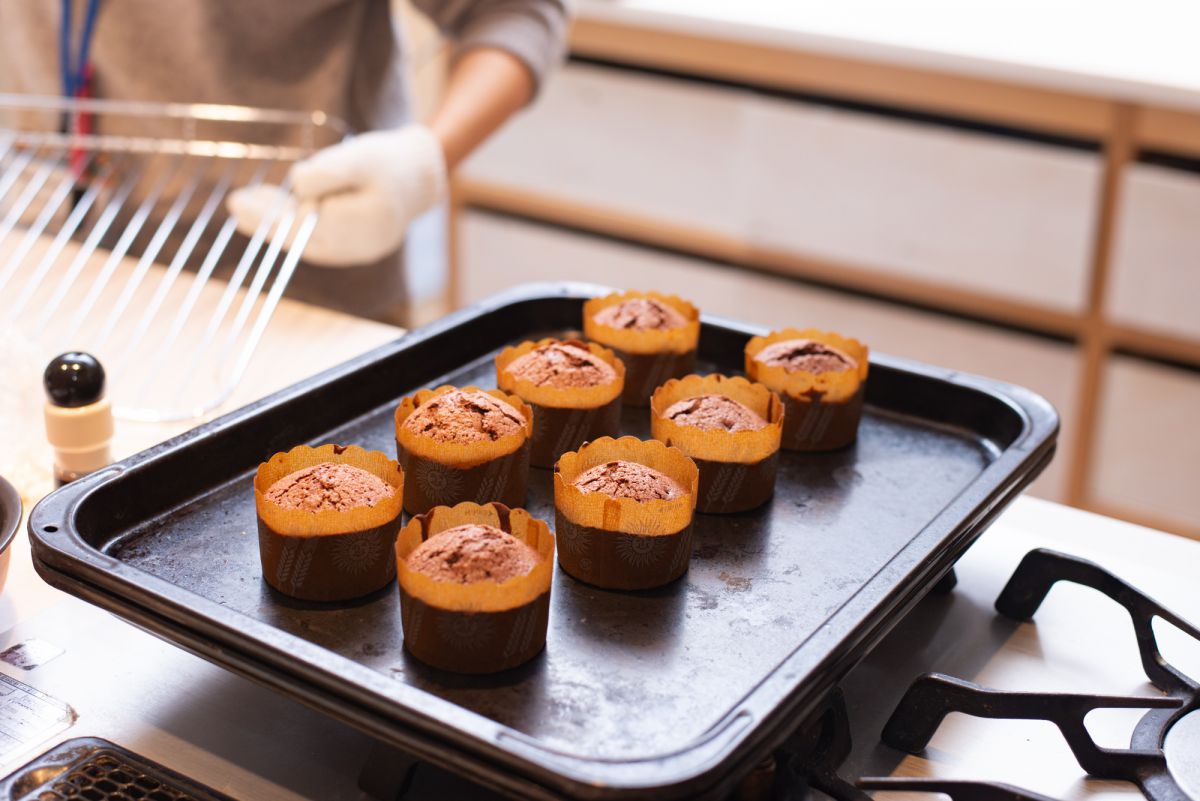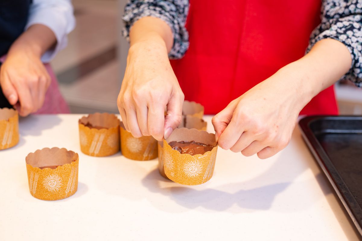 寺田先生「生地を流し込んだら、カップをテーブルに軽く落とします。生地に含まれた空気が抜け、よりきれいに仕上がりますよ」
