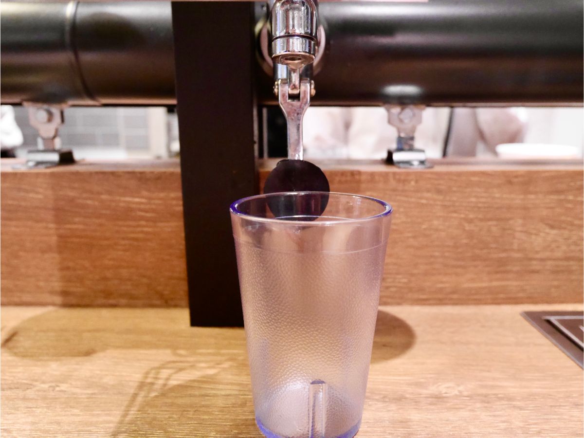 水の出る蛇口やコップ、おしぼりや箸も席ごとに配置。店員さんを呼ぶことなく、セルフで利用できます。