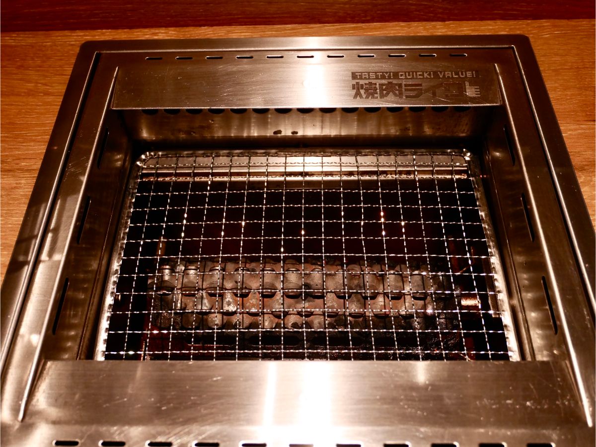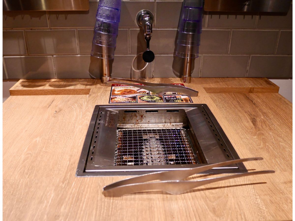 テーブルには1人1台の無煙ロースターが設置されています。隣の席とのゆとりも十分ありますよ。