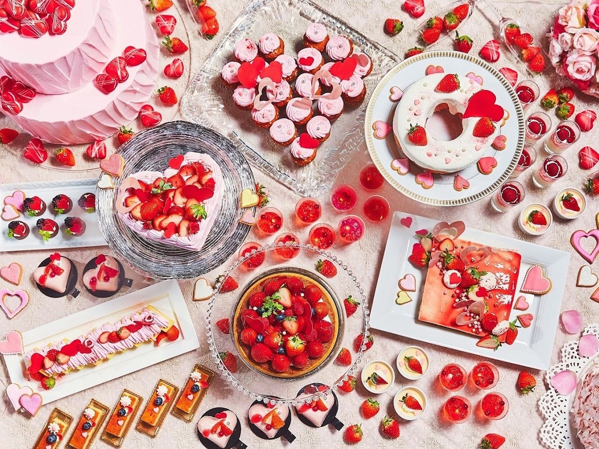 フォトスポットも満載!ハートが散りばめられた『恋するいちごのデザートブッフェ』開催