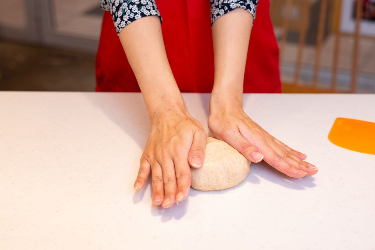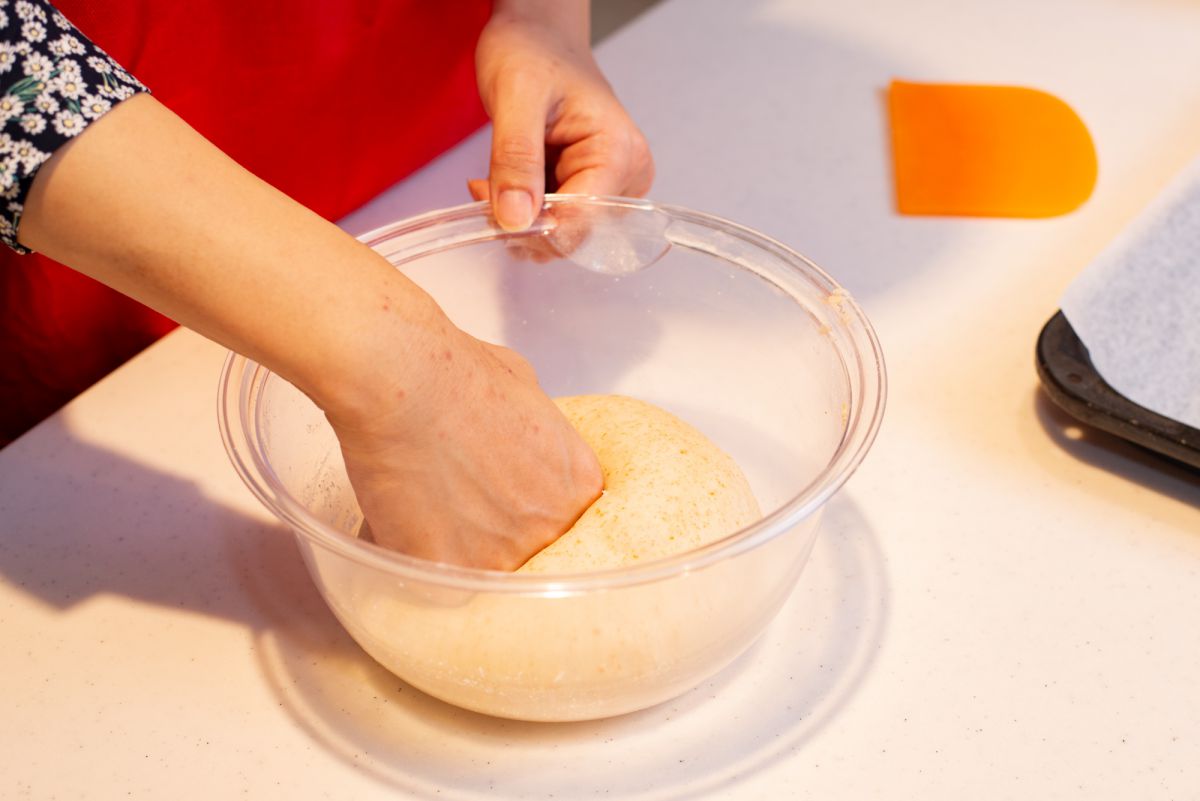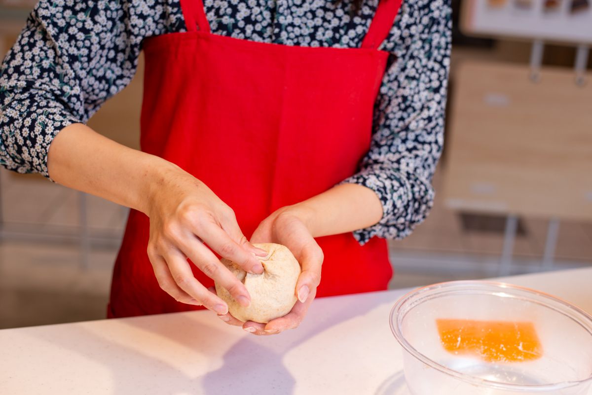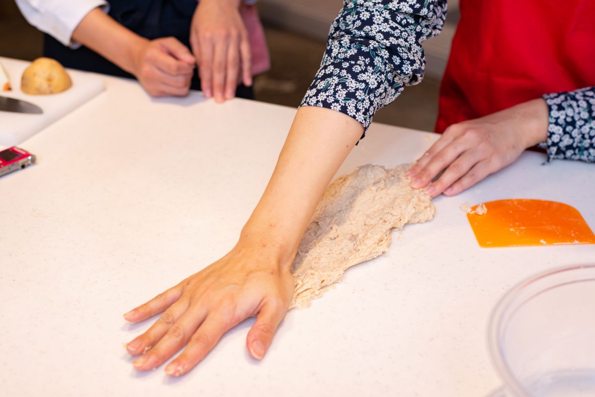 寺田先生「内部に蓄えられた空気を抜いてあげると、より発酵が進みます。ある程度の力をかけ、生地を押してみてください」
