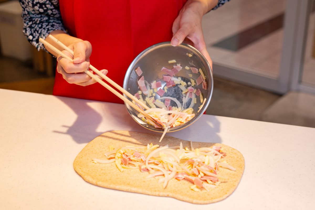 寺田先生「パンの具材になる玉ねぎは、薄くカットするのがポイントです。大きくカットしてしまうと、パンの成形が難しくなってしまいます」