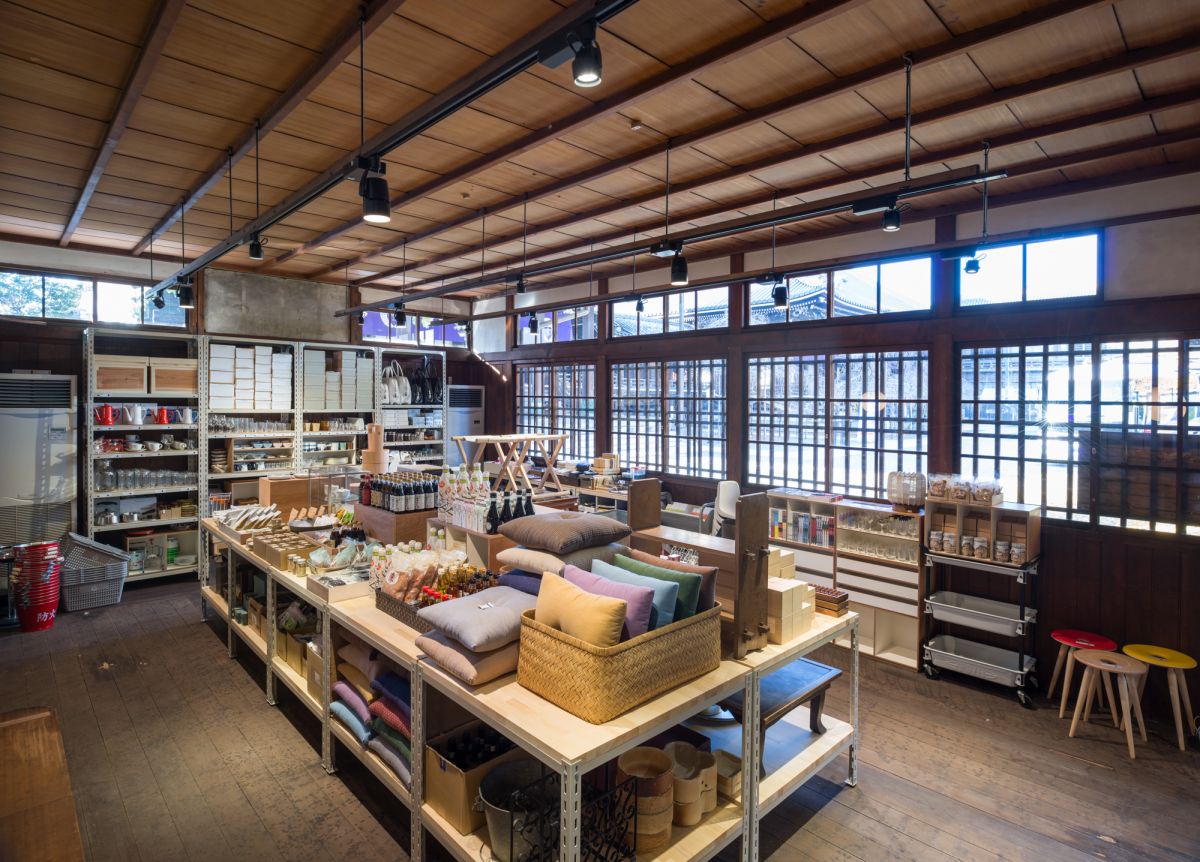 京都にある「本山佛光寺」の境内にあるショップ&食堂。ショップでは、京都の工芸品やロングセラーの生活道具を扱うほか、地域のコミュニティと連動するギャラリーを併設しています。寺のお茶所で営まれる食堂では、「京都定食」をはじめとしたメニューで、地域のさまざまな味を楽しめます。
