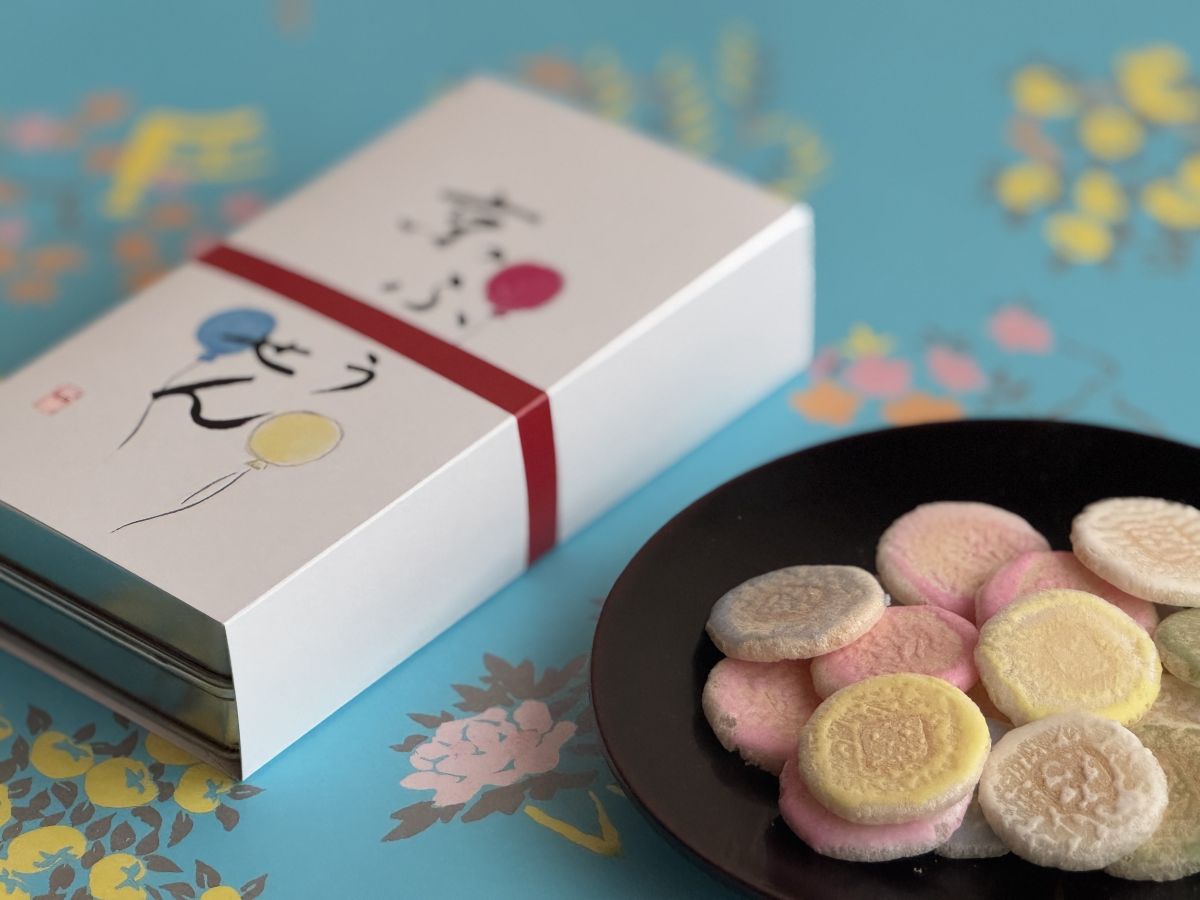 おすすめは「野菜煎餅」1944円や、ふわっとした軽い口どけで、すり蜜を使った繊細で彩りも豊かなひと口サイズのせんべい「京ふうせん」1296円など。京都みやげにぜひ。