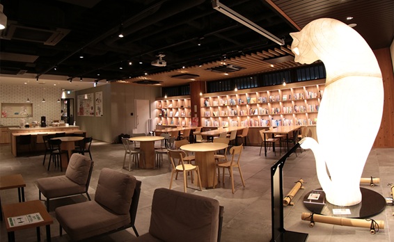 外から後ろ姿が見えていた、大きな光る物体は「WeBase」のシンボルになっている『SHIP'S CAT(船乗り猫)』。現代美術作家で京都造形芸術大学教授のヤノベケンジさんのWeBase 京都オリジナル作品です。